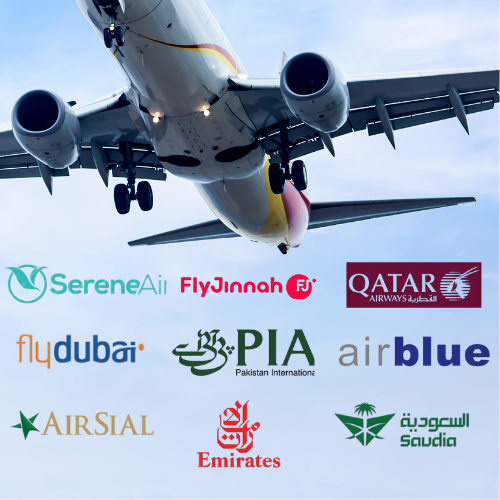 At New Al Ashrafi Travels, we make every journey seamless, memorable, and tailored to your needs. As a trusted travel agency, we specialize in offering flight tickets from leading airlines including PIA, Air Blue, Serene Air, Jinnah Airlines, Qatar Airways, Saudi Airlines, Emirates, Fly Dubai, Turkish Airlines, Thai Airways, AirSial and Fly Nass.
